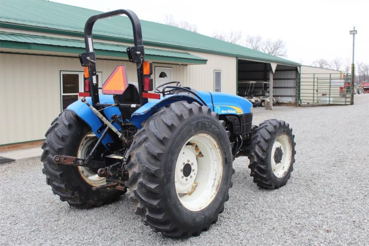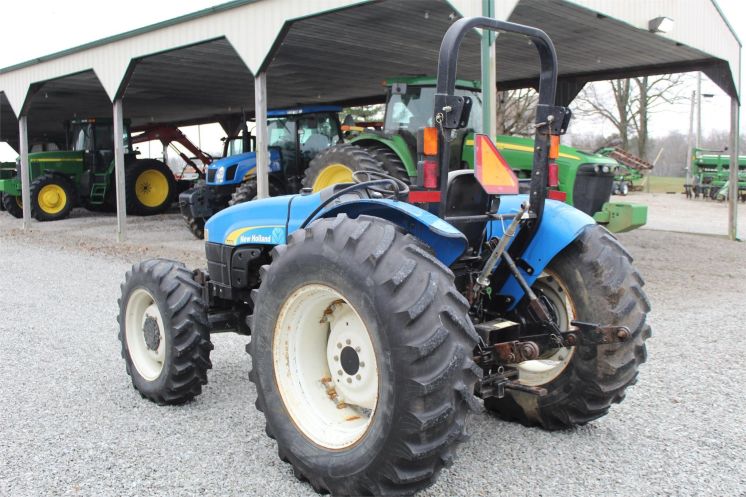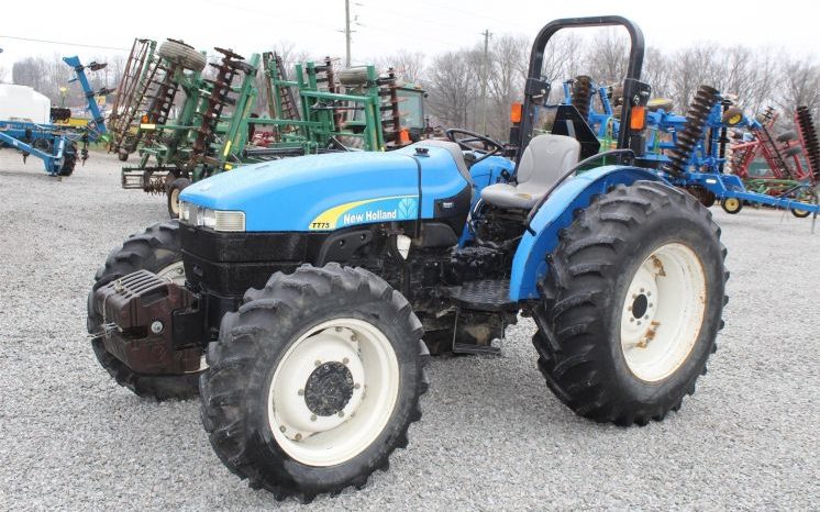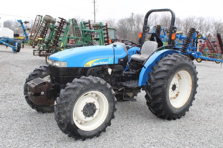 Specifications: - 2008 New Holland TT75A Tractor - Drive: 4 WD - HP: 75 - Hours: 768 - 768 hours - fully weighted - front wheel assist - 40%-50% tires - 16.9-30 rear tires - 540 PTO - single remote - 3 pt needs weight on it to go down - diesel - power steering