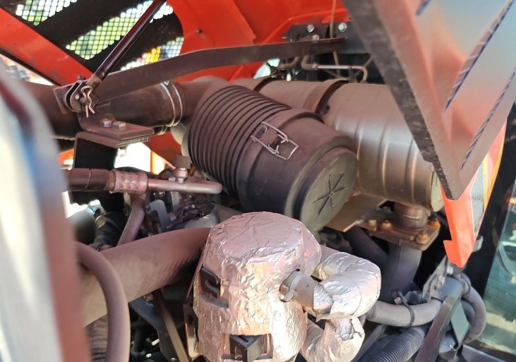 Engine Kubota Serial: 7KE5330 Cylinders: 3 Fuel type: Diesel Transmission Hydrostatic 6F - 6R Differential lock Operators station AC, Heat Features PTO: 540 Three point Top link Loader Kubota LA555 Quick attach Controls: Joystick Grapple bucket Width: 60" Tires Front: 29x12.50-15 Rear: 44x18.00-20