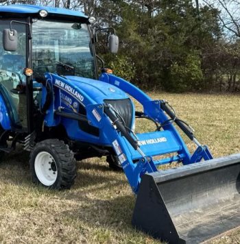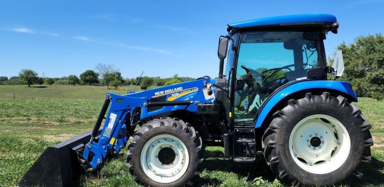 Engine Cylinders: 4 Fuel type: Diesel Transmission Synchro 12F - 12R Left-hand reverser Operators station AC, Heat Features PTO: 540 Three point Top link Hydraulic remote sets Rear: 2 Loader New Holland 550LU Quick attach Self-leveling Controls: Joystick Bucket Width: 72" Tires Front: 11.2-24 Rear: 16.9-30